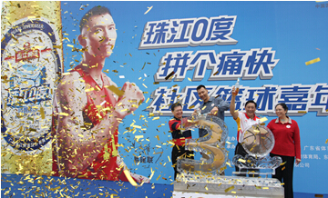 珠江啤酒品牌与篮球结缘多年,自2005年起举办了近万场的民间篮球活动,并加强各方合作,2007年至今连续9年成为中国国家篮球队唯一啤酒赞助商,同时也是第26届男篮亚锦赛唯一啤酒赞助商,2012、2013、2014连续3年成为“广州国际篮球节”的高级合作伙伴,除了支持竞技体育赛事,珠江啤酒还全力支持群众体育事业的发展,尤其是近两年举办的“珠江0度拼个痛快社区篮球赛”,覆盖珠三角几千个社区,吸引近百万人参与。