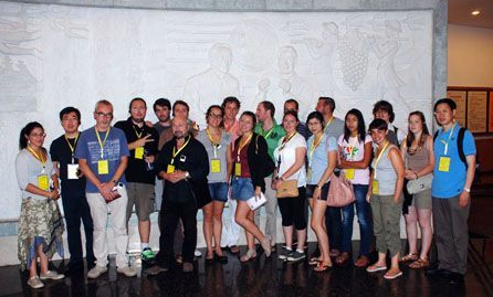在张裕酒文化博物馆,于波馆长代表集团领导接待了我们,首先参观了博物馆,对张裕及中国葡萄酒的历史有了直观的了解,参观结束后在会议室观看了一段英文版企业介绍的视频,随后于馆长回答了学员们提出的问题。集团总工程师李记明博士精心挑选了四款代表产品:解百纳精选级干红、张裕爱菲堡珍藏级干红、黄金冰谷(蓝钻)、张裕XO白兰地,并派技术中心副主任沈志毅来为学员介绍产品情况。