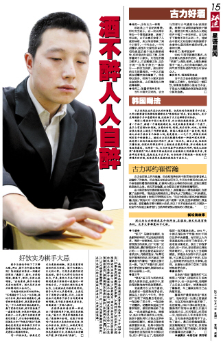 别以为古力好酒是其个性所为,在棋坛,酒文化是有传承的。众多大家都爱杯中之物。