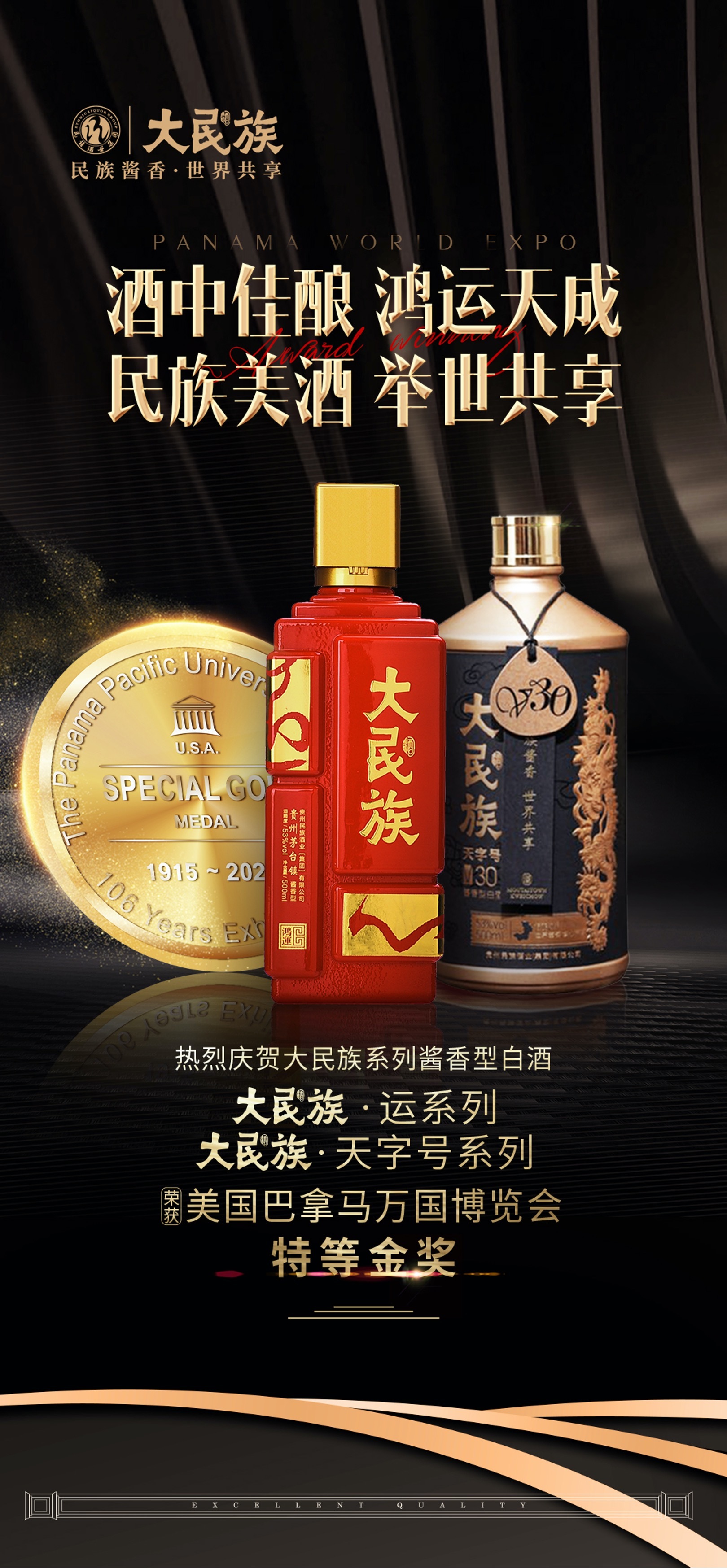 在2021年第106届巴拿马万国博览会中,“大民族系列酱香型白酒”横扫世界诸多名酒,一举斩获“特等金奖”荣耀!