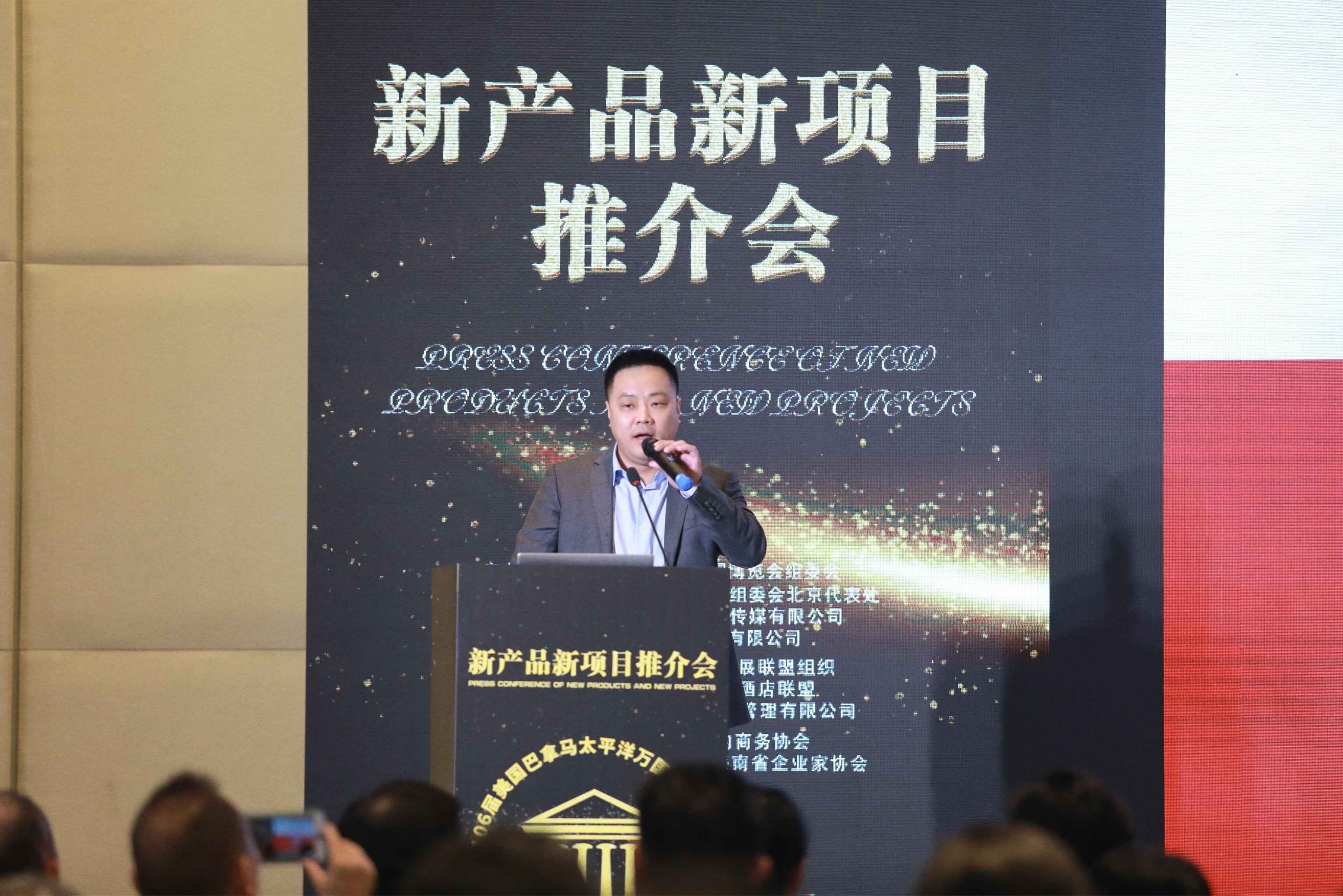 图:2021年第106届美国巴拿马万国博览会新产品新项目推介会上,贵州民族酒业(集团)销售有限公司总经理张怀仁先生分享私域运营底层逻辑及商业模式。