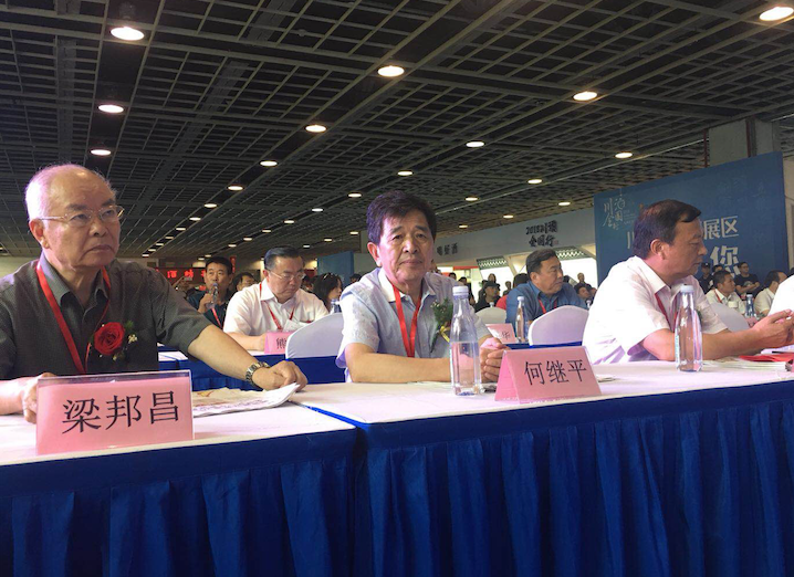 中国白酒泰斗、中国酿酒工业协会白酒专家组组长梁邦昌与汤沟酒业董事长何继平参与开幕式