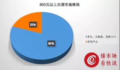 800元以上的高端市场,茅台、五粮液、国窖1573占据了80%以上的市场份额。