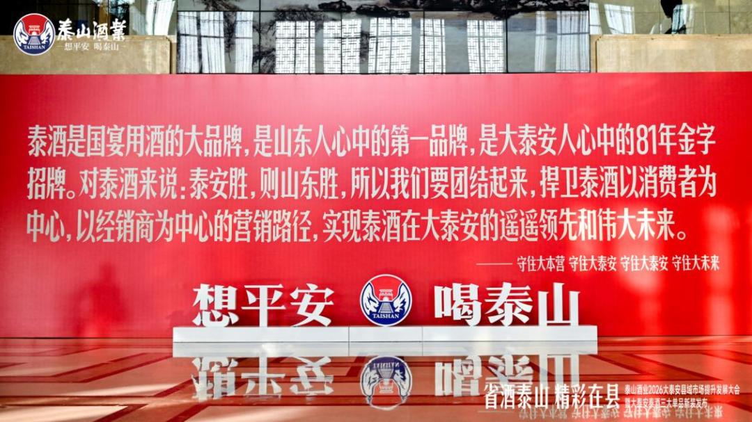 2026年1月16日,泰山酒业集团回归企业“战略根据地”,在泰安市下辖的新泰市隆重举行2026大泰安县域市场提升发展大会暨大泰安泰酒三大单品新装发布活动。